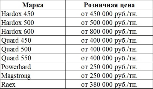 Сравнение цен на аналоги Hardox